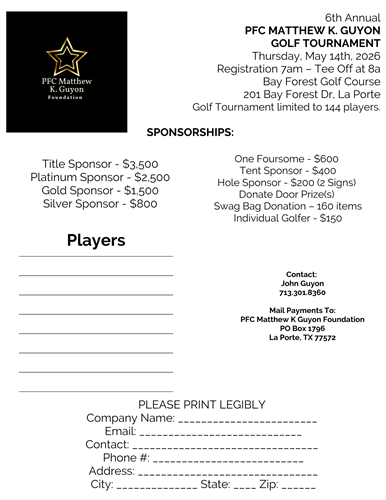 Private First Class Matthew K. Guyon Foundation Golf Tournament.